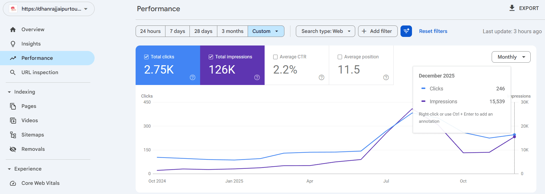 Live GSC Data: See the traffic spike in Q4.